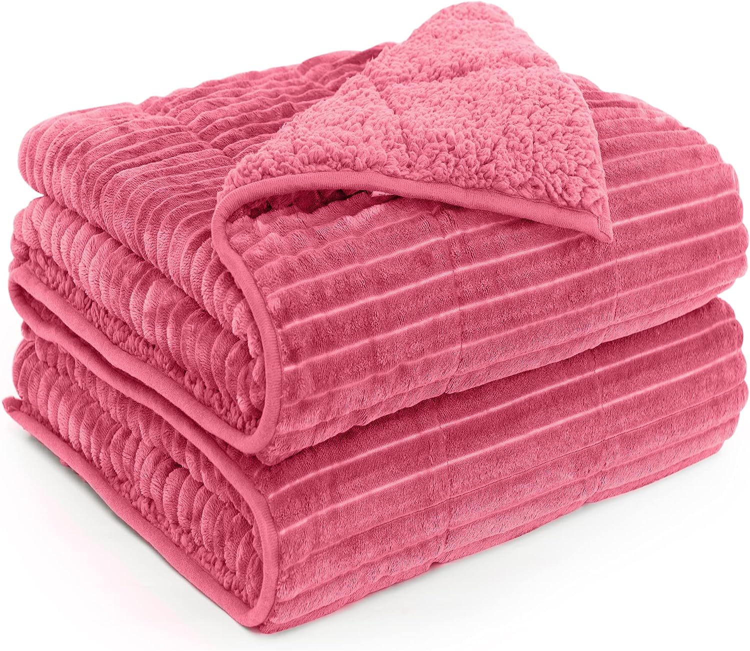 Premium Weighted Blanket: Pawque striped Sherpa weighted blanket is made of 240gsm flannel with newest ribbed stripes. Layered texture offers a smooth velvety touch with ultimate gentleness and warmth. 220gsm same-color Sherpa reverse is super fluffy and cloud-soft with multiple levels of cozy softness. Sleeping and napping in its snuggles gives a breezy feel like in the gentlest embraces